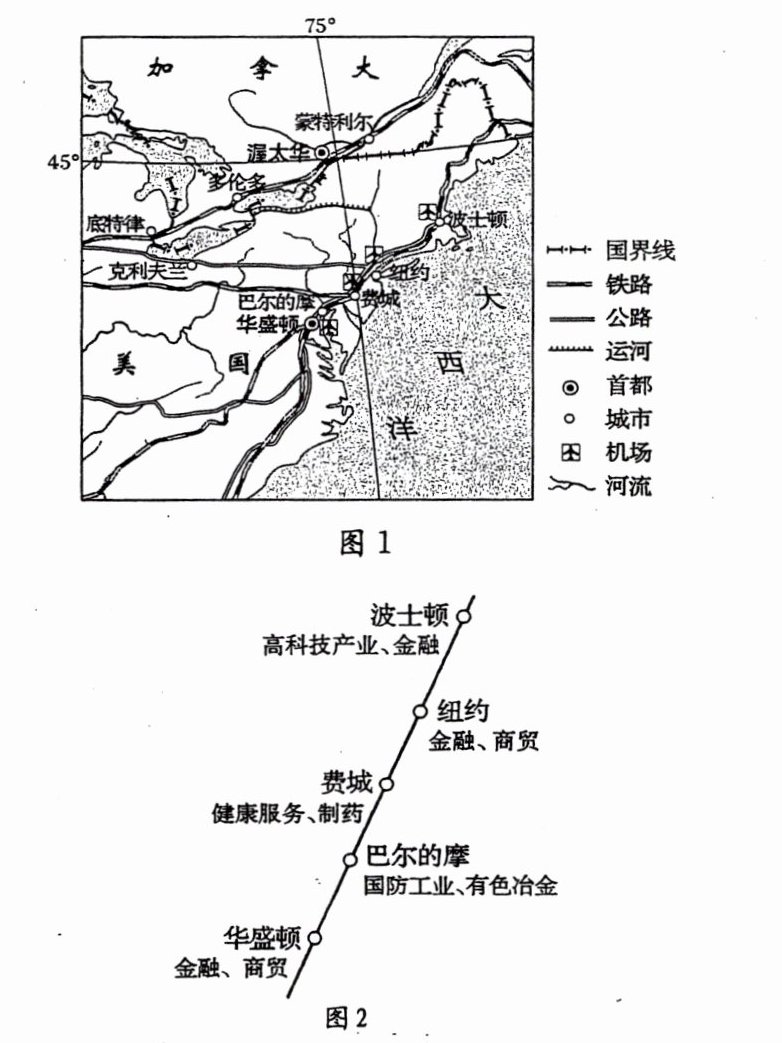 材料一 波士华城市带是美国工业化的重要发源地。20 世纪 60 年代以来,随着传统工业向外转移,该区域逐步发展成为世界重要金融、贸易中心和高科技产业基地。