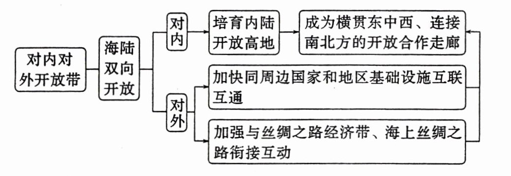 (3)长江经济带是我国沿海、沿江、沿边全面推进的对内对外开放带。