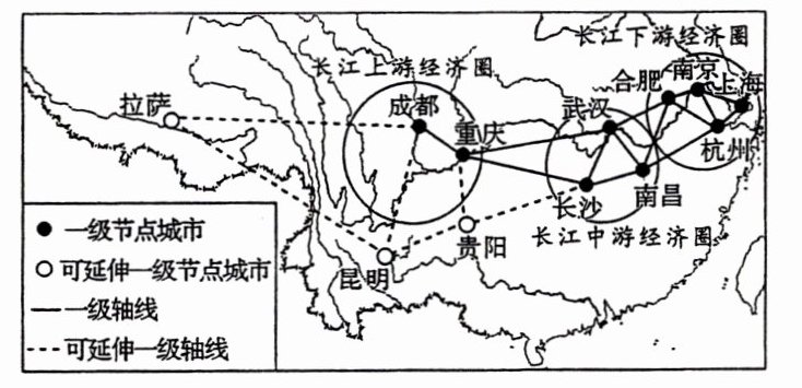 1. 下列关于长江经济带中城市的叙述,正确的是 ( )
