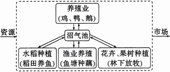 (1)生态效益:变废为宝,物质循环利用;减少污染,提高环境质量。经济效益:多种经营,农民收入提高;农业生产成本降低(少用或不用化肥、农药)。社会效益:增加大量就业机会;为市场提供丰富多样、绿色无公害的优质农产品;环境整洁美观。