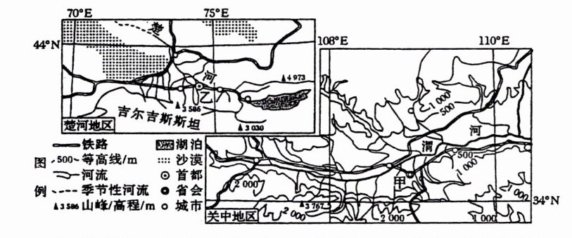 (福建卷)下图示意关中地区和楚河地区。阅读图文材料,完成下列问题。(12 分)