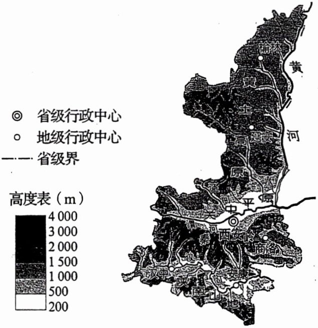 (1)说出渭河平原南北两侧(沿 108°E)的地形特征差异。(4 分)