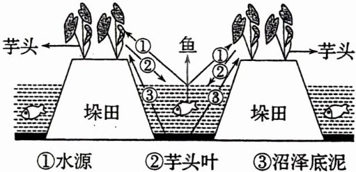 (2024·湖南临澧模拟)江苏兴化垛田传统农业系统创造性地将低洼地改造成岛状耕地,具有独特的水土利用方式,被联合国粮农组织评定为全球重要农业文化遗产。结合垛田农业示意图,完成 4~5 题。