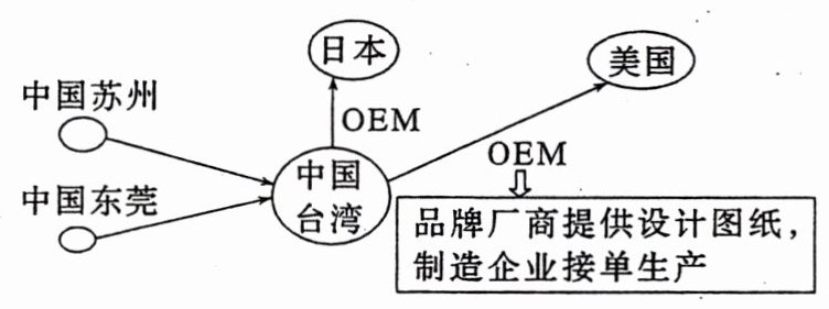 (3)题,跨国公司为了降低生产成本,扩大商品市场,提升产品竞争力,在全球各地寻求最佳区位。在发展中国家建加工基地的主要目的是利用其廉价劳动力、土地和资源等。东莞邻近港澳台,方便获得投资。