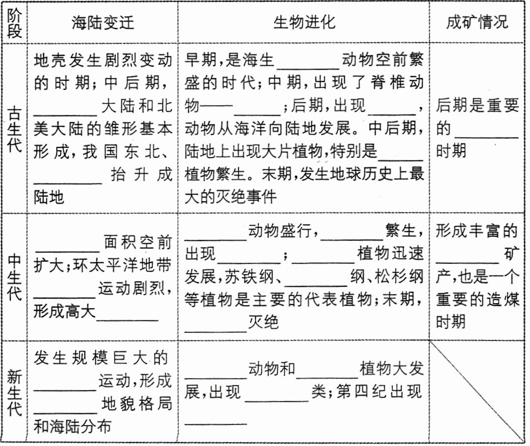 |地层|是地壳上部呈带状展布的层状岩石或堆积物|保存有不同时代的生物遗体或遗迹,遗留下______的物质凭证|
