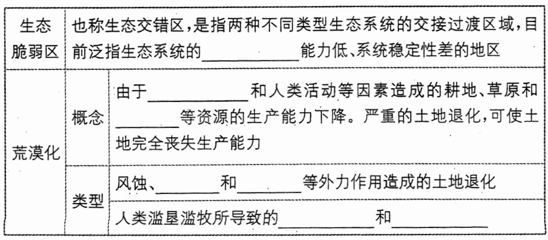 (2)生产方面:导致了植被和地表形态的破坏,使得生物的______持续下降,粮食和牧草减产甚至绝收,继而引发饥荒。