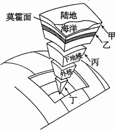 @@B [火山喷发的岩浆来自上地幔上部的软流层,也就是乙层,B正确;甲层位于莫霍面以上,为地壳,A错误;丙层为下地幔,C错误;丁层为内核,D错误。]