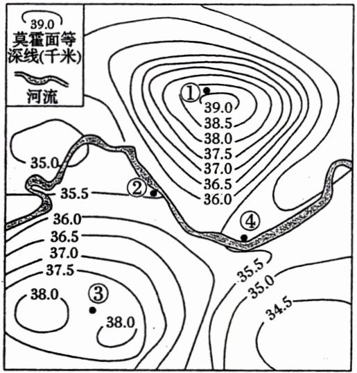 [典例1](北京卷)莫霍面深度不一。下图为长江中下游某区域莫霍面的等深线分布图。读图,回答下题。