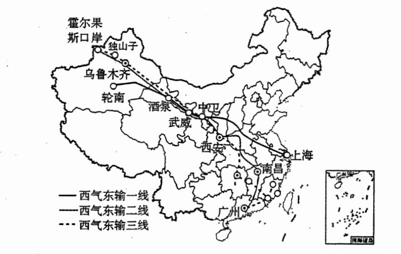(1)“西气东输”主体工程:是从新疆塔里木盆地的______铺设管线到______,全程 4 167 千米。
