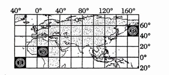 2. 在60°N处,相距一个经度的两个地点的实地距离最有可能是 ( )