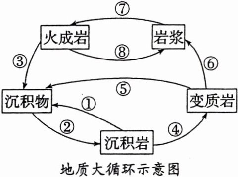 2. 从地质大循环的完整性看,图中缺失的过程包括( )