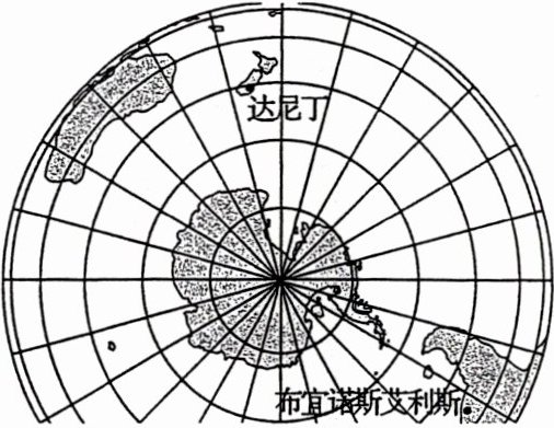 6. 若飞机匀速、等高飞行,则从布宜诺斯艾利斯前往达尼丁飞过的纬度差 ( )