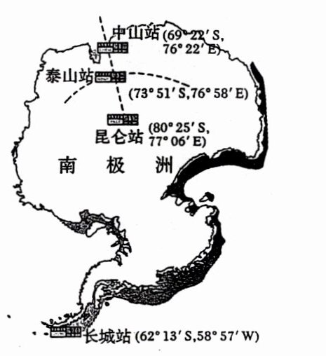 下图是我国四个南极科学考察站的位置示意图。读图,完成7~8题。