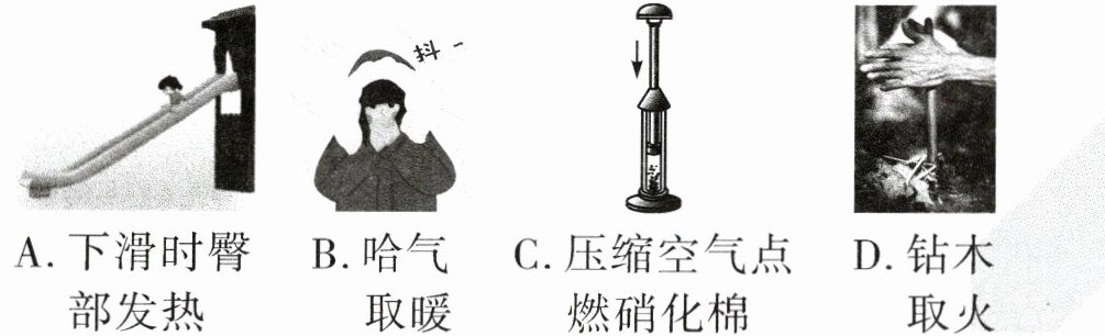 2. (趋势情境 劳动教育)小明帮妈妈烧水时,发现水沸腾时水蒸气把锅盖顶开,下列事例中与锅盖被顶开时内能改变方式不同的是 ( )