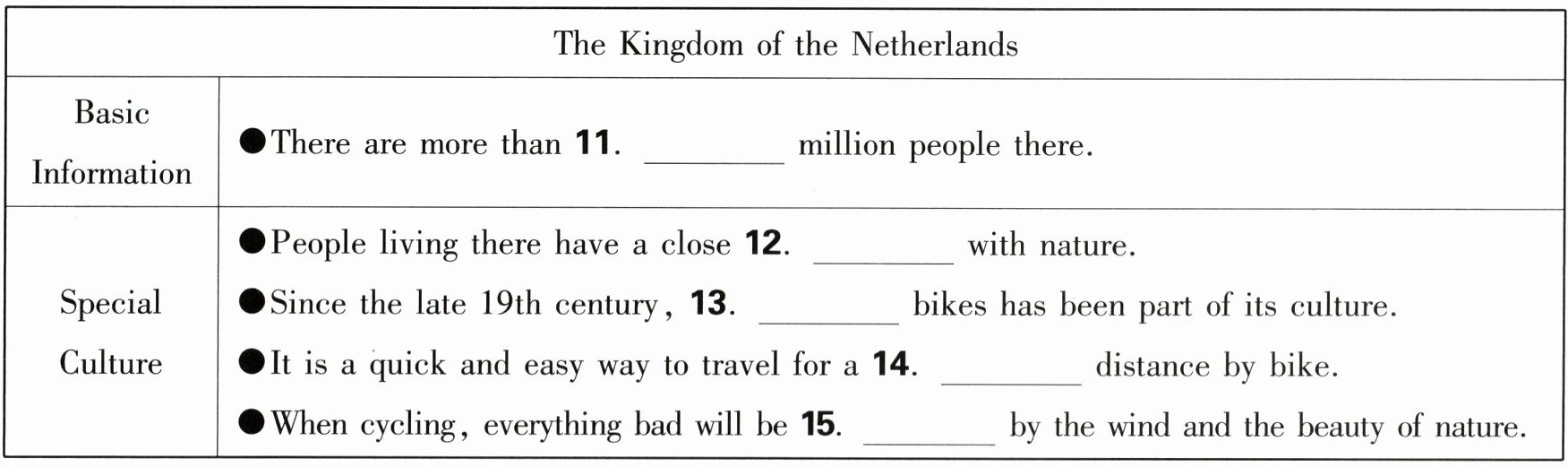本题你将听到一段独白,读两遍。请根据独白内容,用所听到的单词或短语完成下列各题。(每空限填一个单词。)