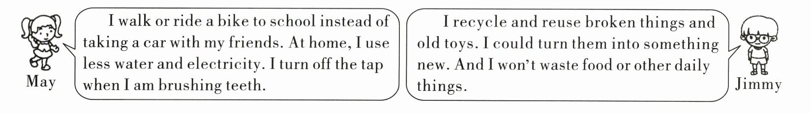 It can give us a sense of purpose. We are helping to protect the planet. Behaviours that are good for the planet are also good for our physical and mental(精神的) health. For example, walking or cycling is greener than driving, and it's also good exercise and can make the air cleaner.
