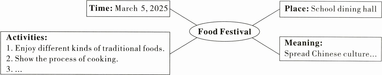 Chinese food plays an important role in Chinese culture. Our school will hold a traditional Chinese Food Festival in the school dining hall on March 5, 2025.