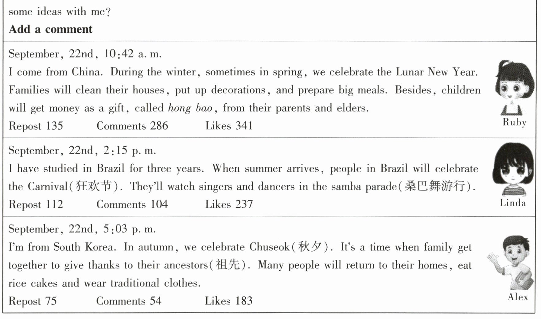 A.The Lunar New Year.B.The Brazil Carnival.C.Korean Chuseok.D.The Beginning of Spring .