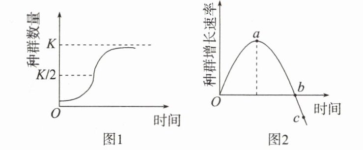 图1是种群数量随时间变化的“S”形曲线,图2为相应的种群增长速率随时间变化的曲线。回答下列问题: