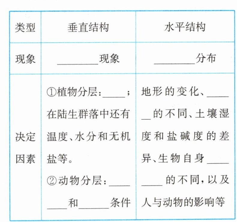 1. 形成原因:在群落中,各个生物种群分别占据了不同的空间,使群落形成一定的空间结构。2. 两种类型