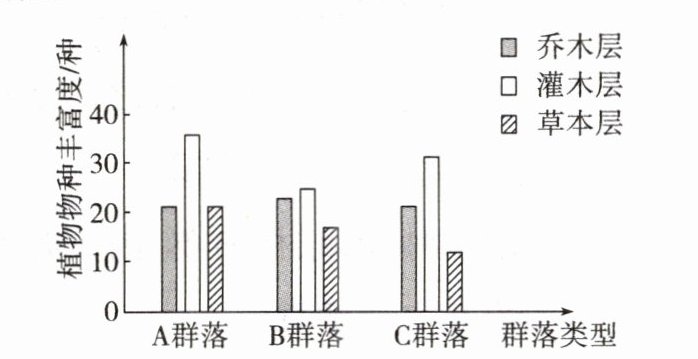 1. 研究人员调查了A、B、C三个群落的植物物种丰富度,结果如下图所示。下列分析错误的是 ( )