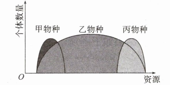 @@3. B 解析:生态位的分化是物种与物种之间及物种与环境之间协同进化的结果,A正确;荒漠群落的物种少、结构简单,各物种之间也会有少量的生态位重叠,B错误;乙物种占有的资源最多,生态系统遭到严重破坏后,更容易存活下来,C正确;若甲物种与乙物种资源重叠部分减少,其种间竞争会减弱,D正确。