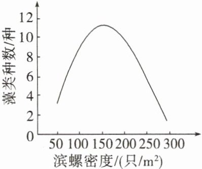 |活动2|生物种间关系影响群落的结构。潮间带常见的滨螺捕食藻类(尤其喜食浒苔),下图表示滨螺密度与藻类种数之间的关系。