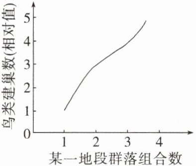 |活动1|两个或多个群落之间的过渡区域称为群落交错区,是一个种群竞争激烈的区域。下图呈现了不同群落交错区的群落组合数与鸟类建巢数的关系。
