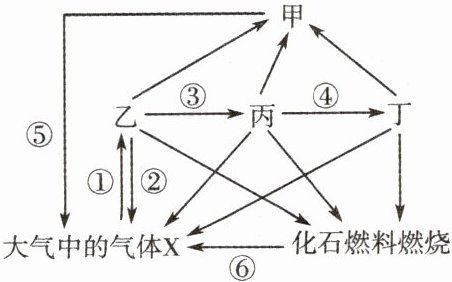 (1)图中的X是什么物质?甲、乙、丙、丁分别是生态系统的哪种成分?