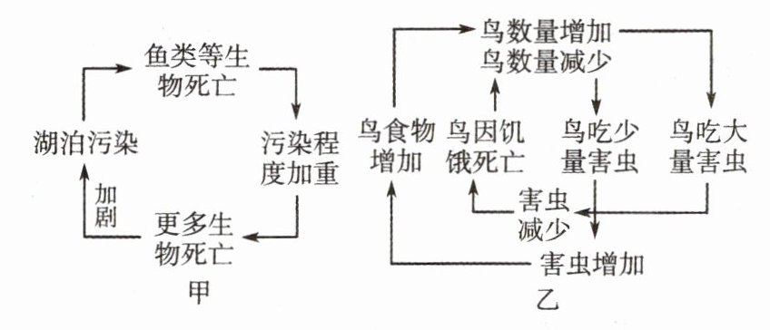 生态系统能够通过自我调节,维持自身结构、功能的相对稳定,达到生态平衡。分析下图甲、乙并回答相关问题: