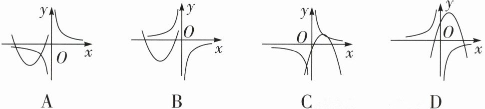 8. ( 教材 P49 第 8 题改编) 二次函数 $y = ax^{2}+4x + 2(a\neq0)$ 和反比例函数 $y = -\frac{a}{x}$ 在同一平面直角坐标系中的图象可能是 ( )