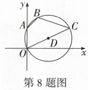 8. 如图,在平面直角坐标系中,点A在y轴正半轴上,⊙D经过点O,A,B,C四点,且OC为⊙D的直径,若∠ABC=120°,OA=2,则点C的坐标为 ( )