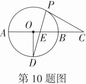 10. 如图,AB为⊙O的直径,AB=2,点C是AB延长线上一点,且BC=1,点D是AB下方弧的中点,连接OD,点P是AB上方⊙O上一点(不与点A,B重合),连接PD与AB交于点E,若CP=CE,则CE的长为 ( )