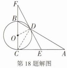 18. (8分)如图,在Rt△ABC中,∠ACB=90°,以BC为直径作⊙O,交AB于点D,点E为AC的中点,连接ED并延长与CB的延长线交于点F.