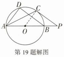 19. (10分)如图,AB是⊙O的直径,C,D在⊙O上,AC平分∠BAD,过点C作⊙O的切线与AB的延长线交于点P,连接BD.