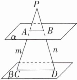 【例2】如图,已知平面$\alpha // $平面$\beta$,$P\notin \alpha$且$P\notin \beta$,过点$P$的直线$m$与$\alpha,\beta$分别交于$A,C$,过点$P$的直线$n$与$\alpha,\beta$分别交于$B,D$,且$PA = 6$,$AC = 9$,$PD = 8$,求$BD$的长.