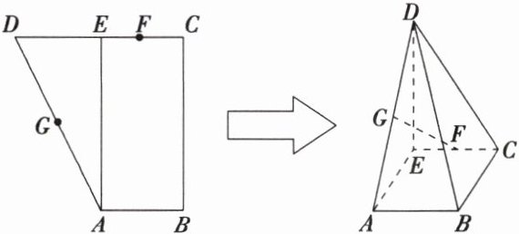 例4 如图,已知直角梯形ABCD中,E为CD边中点,且$AE\perp CD$,又G,F分别为DA,EC的中点,将$\triangle ADE$沿AE折叠,使得$DE\perp EC$.
