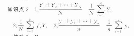 2.总体均值加权平均数的形式:如果总体的N个变量值中,不同的值共有k(k≤N)个,不妨记为Y₁,Y₂,…,Yₖ,其中Yᵢ出现的频数fᵢ(i = 1,2,…,k),则总体均值还可以写成加权平均数的形式$\overline{Y}=\frac{f_{1}Y_{1}+f_{2}Y_{2}+\cdots +f_{k}Y_{k}}{N}$.