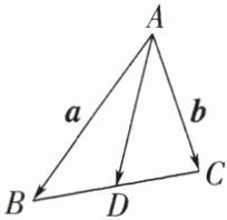 体验4.如图,$AD$是$\triangle ABC$的中线,已知$\overrightarrow{AB}=\boldsymbol{a}$,$\overrightarrow{AC}=\boldsymbol{b}$,若$\{\boldsymbol{a},\boldsymbol{b}\}$为基底,则$\overrightarrow{AD}=$______.