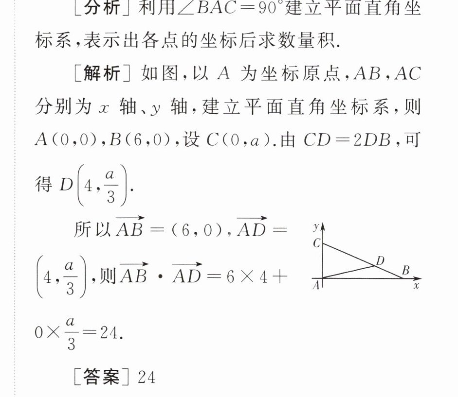 例8 在$\triangle ABC$中,$\angle BAC = 90^{\circ}$,$AB = 6$,$D$在斜边$BC$上且$CD = 2DB$,则$\overrightarrow{AB}\cdot\overrightarrow{AD}=$______.