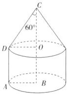 解:如图所示旋转体为一个圆锥和与它同底的一个圆柱组成,由条件可得$AD = BO = OC = a$,$DO = AB=\sqrt{3}a$,$DC = 2a$,