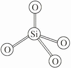 在硅酸盐中,Si和O构成了硅氧四面体,其结构如上图所示。每个Si结合 4 个O,Si在中心,O在四面体的4个顶角;许多这样的四面体还可以通过顶角的 O 相互连接,每个 O 为两个四面体所共有,与 2 个Si相结合。