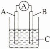 解析 原电池中,负极金属失去电子,发生氧化反应,溶解,质量减小,故A极为负极,B极为正极,A、D说法正确;A、B、C分别为Zn、Cu和稀盐酸时,可以构成原电池,且现象符合题意,B说法正确;电解质溶液中阳离子移向正极,C项错误。