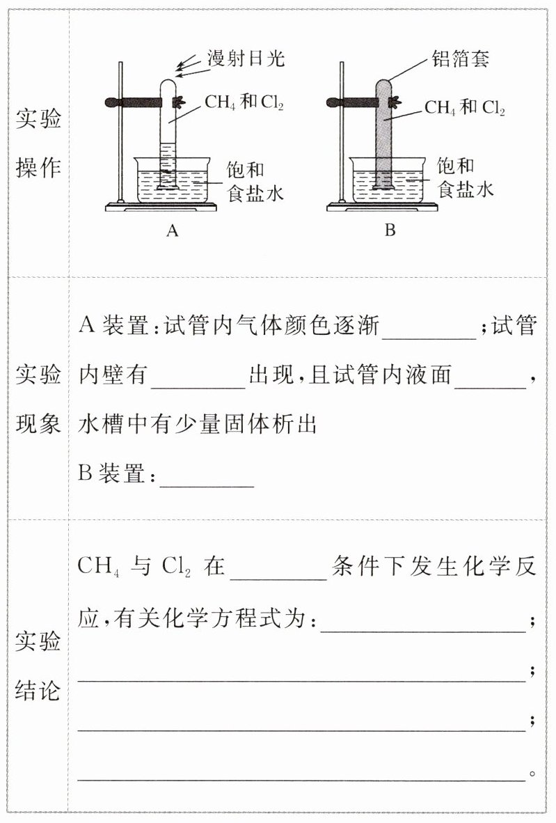 ①实验探究:$CH_{4}$和$Cl_{2}$的取代反应