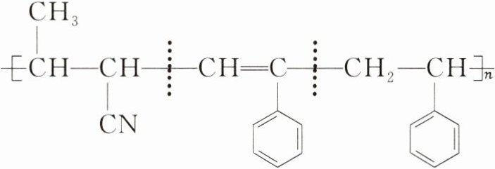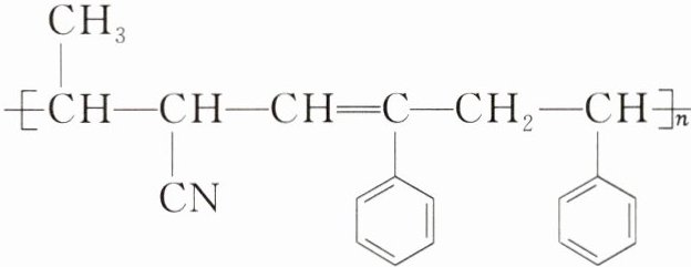 $[\underset{\mathrm{C}\mathrm{N}}{\underset{\mathrm{}}{\overset{\mathrm{}}{\mathrm{C}\mathrm{H}}}}-\underset{\mathrm{C}\mathrm{H}_{3}}{\underset{\mathrm{}}{\overset{\mathrm{}}{\mathrm{C}\mathrm{H}}}}-\mathrm{C}\mathrm{H}=\underset{\mathrm{}}{\overset{\mathrm{}}{\underset{\mathrm{}}{\overset{\mathrm{}}{\mathrm{C}}}}}-\mathrm{C}\mathrm{H}_{2}-\underset{\mathrm{}}{\overset{\mathrm{}}{\underset{\mathrm{}}{\overset{\mathrm{}}{\mathrm{C}\mathrm{H}}}}}]_{n}\underset{\mathrm{}}{\overset{\mathrm{}}{\underset{\mathrm{}}{\overset{\mathrm{}}{\mathrm{C}\mathrm{H}}}}}$