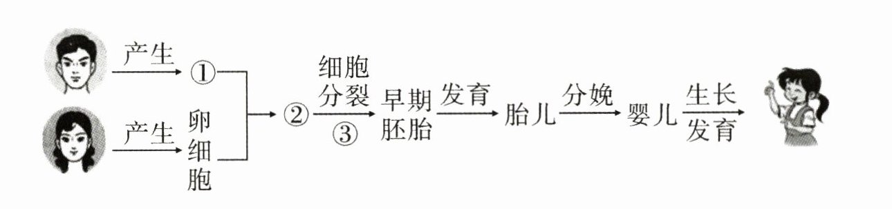 (1)小莹新生命的起点是[②]________,它由[①]________和卵细胞在_______内结合形成。(6分)