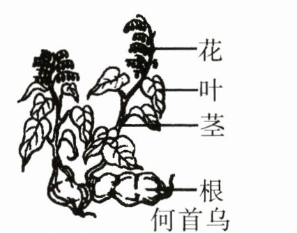 (1)被子植物的种子外面有果皮包裹着,形成果实,具有根、茎、叶、花、果实和种子六大器官,何首乌具有根、茎、叶、花、果实和种子等器官,属于被子植物。植物的进化历程:原始藻类植物→原始苔藓植物→原始蕨类植物→原始种子植物(包括原始裸子植物和原始被子植物)。因此,从进化历程上看,何首乌比苔藓植物发生迟。