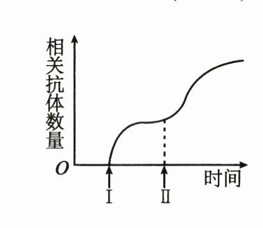 17. 下图中Ⅰ和Ⅱ分别表示某种病毒先后两次侵入人体后,人体产生抗体的数量变化曲线,相关叙述错误的是 ( )