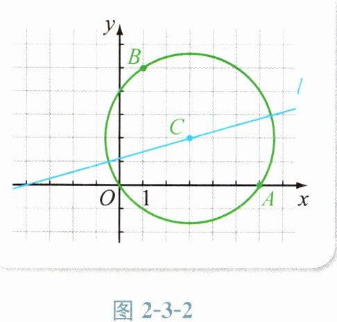 例2 如图2−3−2所示,设⊙C的圆心C在直线l:2x - 7y + 8 = 0上,且A(6,0),B(1,5)都是⊙C上的点,求圆的标准方程.