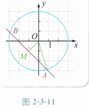 解 (1)(方法一)如图2−3−11所示,设AB的中点为M,根据垂径定理可知OM⊥AB,因此△AMO是个直角三角形.由点到直线的距离公式可知